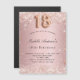 Um convite para uma elegante 18ª festa de aniversário. Um plano de fundo de gradiente cor-de-rosa. Decorado com pó de brilho falso. Personalize e adicione um nome e detalhes da parte. O nome é escrito com um script de estilo manuscrito. O número 18 é escrito com fonte rosa dourada no estilo do balão. Tanto um convite como um lembrete Salvar a Data para seus convidados!