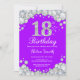 18.º Aniversário Convite Roxo e Diamante de Prata