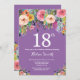 18.º Aniversário do Purple Floral Convite para Mulheres. Flor Floral de Água. Fundo de Violet Lavanda Lilac Roxo. Rosa, Amarelo, Laranja, Flor Roxo. Aniversário Adulto. 13 15 16º 18º 20 21 rua 30 40º 50º 80 de 60º 70 de 100º, qualquer idade. Para mais personalização, clique no botão "Personalizar" e use a ferramenta design para modificar este modelo.