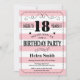 18.º Aniversário Convite Pink e White Stripes Typografia. 18 anos. Aniversário Adulto. Homens ou Mulheres Aniversário. Meninos Meninos ou Meninas Meninas Meninas Adolescentes Convidam. 13 15 16º 18º 20 21rua 30 40º 50º 60º 80 de 70 100º. Qualquer Idade.