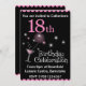 18o Convite de aniversário com um design do vidro de cocktail. Esquema de cores cor-de-rosa & preto.