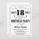 18o Tipografia preto e branco do convite do aniversário. Fundo preto e branco. Aniversário adulto. Aniversário masculino dos homens ou das mulheres. Miúdos menino ou senhora Adolescente Adolescente Bday Convite da menina. 13o 15o 16o 18o 20o 2ø 30o 40th 50th 60th 90 100th do 80 do 70. Alguma idade. Para uma personalização mais adicional, clique por favor "personalizam-no" botão e usam-nos nossa ferramenta de design para alterar este modelo.