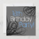 azul, preto, design do tema do carvão vegetal, 18o convite de aniversário com redemoinhos pretos. Adicione seus detalhes feitos sob encomenda do partido sobre para trás
