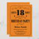 18o Preto e laranja do convite do aniversário