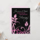 Convide um amigo ou parente para se juntar ao Convite de festas de Sobrevivência do Câncer da Mama. Flores cor-de-rosa a preto. Este cartão moderno e clássico é excelente de enviar com os vossos detalhes do evento aos sobreviventes do câncer da mama e aos doentes.