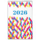 Calendário retro colorido da arte 2017. Apropriado para a casa, e o presente incorporado year end ou o presente do promocional para clientes. O calendário da mesa com seu logotipo da empresa lembra-os de seus serviços.