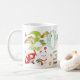 persegue o ornamento é baseado no cão japonês "Shiba". 2018 são decorados com padrões de Japnese, mães e flores da ameixa com pinheiros estilizados e flores no fundo. Esta é uma ilustração digital.