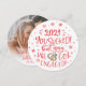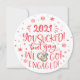 Celebre e anuncie seu noivado com este cartão de anúncio de save-the-date divertido e moderno. A frente apresenta uma legenda moderna e escrita à mão que diz "2022 você foi um lixo! Mas yay, nós ficamos noivos!" em fontes festivas vermelhas escritas à mão sobre um fundo branco clássico, e é decorado com flocos de neve e uma ilustração de dois anéis de noivado dourados.
