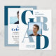 2023 BUDGET Modern Blue Trendy Typografia 2 Foto Festa de formatura Convite. Felicita o formando pelo seu bem merecido sucesso e celebra-o com este belo e respeitador do orçamento. Observe que ENVELOPES NÃO ESTÃO incluídos. As dimensões desta placa são de 4,5" x 5,6" e ajustado bem em um envelope A6 de 4,75" x 6,5", se você tiver. Ou você pode selecionar uma opção de envelope. Todos os textos estão pré-organizados para que você personalize fácil e rapidamente com seus próprios detalhes.