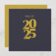 Cartões salve a data elegantes e modernos de 2025 em preto e ouro. Mostrado no acabamento do shimmer de pérolas quadrado. Há uma variedade de opções de papel. Você pode usar a modelo para personalizar essas placas planas, o nome, o local e a data especial. Excelente de aniversário, casamento, festa de formatura, comemoração da aposentadoria, caso de gravata negra, e muito mais. Personalize a frente e o verso.