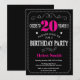 20 Aniversário Convite Preto Rosa Quente
