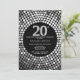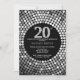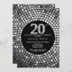 Convite de Aniversário de 20. Negra e Silver Glitter. Diamante de Prata.Festa de aniversário para adultos. Para Homens ou Mulheres.