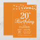 20 Aniversário com Luzes de Cordas. Fundo Laranja. Homens ou mulheres Lady Elegant convidam. 13 15 16º 18º 20 21rua 30 40º 50º 60º 80 de 70 100º, qualquer idade. Para mais personalização, clique no botão "Personalizar" e use nossa ferramenta de design para modificar este modelo.