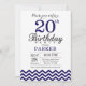 20 Birthday Convite Marinho Blue Chevron