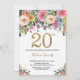 Convite de Aniversário para 20 Floral para Mulheres. Flor Floral de Água. Dourada Glitter. Rosa, Amarelo, Laranja, Flor Roxo. Aniversário Adulto.