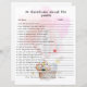 Embarque numa Viagem Inesquecível com "20 Perguntas sobre os Pais" - Um Jogo de Chás de fraldas Incrível e Personalizado Enquanto você se prepara para celebrar a chegada do seu pequeno pacote de alegria, por que não adicionar um toque de conexão encantadora ao seu chá de fraldas com nosso jogo único e envolvente, "20 Perguntas sobre os Pais". Esta atividade encantadora foi projetada para criar memórias duradouras, promover conversas significativas, e celebrar a história de amor que reuniu sua família. A essência das "20 perguntas sobre os pais": Imaginem a sala cheia de risos, sorrisos e uma sensação de conexão enquanto seus convidados mergulham em um jogo que celebra a jornada dos futuros pais. "20 Perguntas sobre os Pais" não é apenas um jogo; é uma exploração íntima das histórias e experiências que moldaram a vida dos futuros pais, criando uma experiência personalizada e animadora para todos os envolvidos. Como jogar: Distribuição de Cartões de Pergunta: Para iniciar o jogo, distribua cartões "20 Perguntas sobre os Pais" a cada convidado. Esses cartões cuidadosamente elaborados apresentam uma série de perguntas que incitam os participantes a compartilhar ideias, memórias e histórias sobre os futuros pais. Respondendo e compartilhando: à medida que o jogo progride, os convidados se revezam em responder às perguntas em seus cartões, compartilhando histórias, memórias e desejos relacionados aos futuros pais. As perguntas cobrir uma gama de tópicos, desde a noite de encontro favorita do casal até suas memórias mais queridas juntas. Noivado colaborativo: o jogo incentiva o noivado colaborativo enquanto os convidados ouvem as respostas uns dos outros e compartilham a alegria de descobrir mais sobre os pais. Risos, memórias compartilhadas, e momentos animadores enchem a sala, promovendo uma sensação de conexão e celebração. Criação de Guarda-Saída: Os cartões de interrogação preenchidos servem como uma bela guardiã para os futuros pais. Eles se tornam uma coleção de mensagens, histórias e desejos sinceros que capturam o amor e o calor compartilhados por amigos e familiares durante esse período especial.