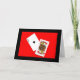Um Ace de Pistas e um Jack de Corações fotografados contra um fundo vermelho brilhante com uma borda negra são o tema do meu "21? Sorte sua! Cartão de aniversário. Um Ace e um Jack no total 21 em Blackjack e isso é sorte!