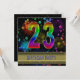 Um divertido 23º convite de aniversário com cores felizes, bolhas e fogos de artifício. Um cartão de excelente para qualquer idade. Veja toda a gama de convites e cartões na minha loja.