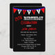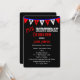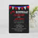 Este convite de aniversário 25 celebra um 25 com bandeiras em vermelho e branco sobre um fundo preto com as letras H A P Y que soletram felizes. Além disso, um estilo divertido é usado para a design criar um convite para a tipografia moderna para um 25 de aniversário para homens. Direitos autorais
