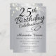Um fundo de prata sparkly destaca este convite do aniversário do marco miliário. Mude o ano comemorativo para fazer-lhe seus próprios. Aperfeiçoe para uma 25a celebração.