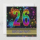 Um divertido 26º convite de aniversário com cores, bolhas e fogos de artifício felizes. Um cartão de excelente para qualquer idade. Veja toda a gama de convites e cartões na minha loja.
