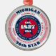 Mostre seu orgulho de Estado nesta temporada de festas com este Enfeites de natal exclusivo dedicado a Michigan, o 26º estado. Tem cores patrióticas vermelhas, brancas e azuis com design de tipografia circular em fundo branco. O texto inclui fatos sobre o estado, como nome, capital, abreviação de estado, região, fuso horário, coordenadas geográficas, ano de sua soberania e nome do seu residente. É um presente excelente para aqueles que desejam celebrar seu estado ou para aqueles que estão se sentindo nostálgicos sobre seu estado natal.