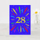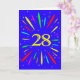 Uma carta de 28 anos explosiva! Que maneira maravilhosa de enviar cartões de aniversários. O número 28 em amarelo brilhante com uma explosão de cores brilhantes e estrelas.