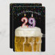 Número 29 velas em caneca de cerveja com confete colorido em preto para o convite da 29ª festa de aniversário.