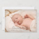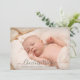 O anúncio de nascimento de uma foto de bebê moderna para uma menina ou um menino. Basta usar esta modelo para adicionar sua própria foto personalizada na frente e atrás da carta; do seu próprio doce bebê e personalizar com o nome do bebê na elegante tipografia de roteiro.