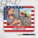 Mouse pad com suas próprias fotos enquadradas por uma imagem da bandeira dos EUA. Excelente para Dia de os pais ou qualquer patriota ou veterano.