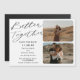 O branco preto moderno, melhor junto, salve a data com uma elegante e legal letra de pincel escrita à mão, adicione 2 das suas fotos favoritas, todas as cores são totalmente editáveis para corresponder ao seu tema de casamento.