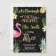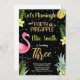 3º Convites para abacaxi Flamingo com brilho preto