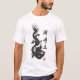 Esta camisa original caracteriza um dragão austero, estilizado com as palavras que Tae Kwon faz na caligrafia coreana à direita. A costeleta vermelha de AKTA aparece na parte inferior.