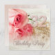 Uma bela imagem delicada de um rosa em tons cor-de-rosa suave. No fundo está uma corda de pérolas. Todo o efeito é atenuado por uma pena delicada. Um maravilhoso 32º convite de aniversário. Alterar a parte de trás para os detalhes do seu próprio partido