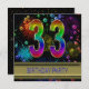 Um divertido 33º convite de aniversário com cores, bolhas e fogos de artifício felizes. Um cartão de excelente para qualquer idade. Veja toda a gama de convites e cartões na minha loja.