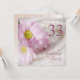 Uma bela imagem delicada das margaridas em tons rosa suave. No fundo está uma corda de pérolas. O efeito é suave e antiquado. Um convite de aniversário 33º encantador. Alterar a parte de trás para os detalhes do seu próprio partido