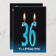 Aqua e fundo de gradiente azul com globos oculares em velas para o 36º Convite de aniversário.