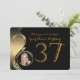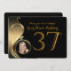 37th, convite do aniversário, foto 2 possíveis, ouro do brilho do número, ornamento do redemoinho, estilo de Gatsby, preto, parte traseira da informação.