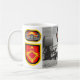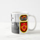 caneca de café 11oz que mostra 321 artillerymen DISTANTES do planador de crewmembers de WWII e de HIMARS hoje de conduzir sua missão aeroterrestre. Logotipos DISTANTES da marca da bala de canhão os 3-321 & do tiquetaque amarram o passado ao presente. A imagem é flanqueada pelo flash do batalhão com crista regimental e pelo revestimento protetor com asas do planador.