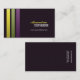 Cartões de visitas simples, modernos e na moda em um quase preto com as 3 listras verticais no amarelo, no verde e no roxo. Cartão de visita genérico para algum tipo de ocupação. Projeta o © Lisa Marie Robinson