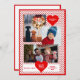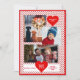 Um cartão temático da família de excelentes personalizado com 3 fotos da sua família. Apoiado com um padrão cardíaco vermelho.acentuado com grandes corações vermelhos segurando mais personalizações com nomes familiares, ano e Feliz dia de os namorados.