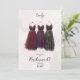 Glam 3 Exquisite Bridesmaid Burgundy and Black Dresses Watercolor Effect Proposal Card.