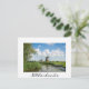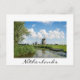 Cartão postal de três moinhos de vento ao longo de um canal com barcos e sementes sob um céu azul com nuvens inchadas criando uma cena pacífica no campo holandês de Leidschendam, Países Baixos com uma fronteira branca e o texto: "Países Baixos".