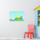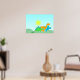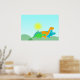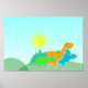 poster Dinossauro Amigos. Três pequenos dinos bonitos: Stegossauro verde, Diplodocus laranja e tricerátopos azuis num feliz dia ensolarado poster. Este brilhante impressão de poster é totalmente personalizável, adicione seu texto e imagens! Um poster de dinossauro de desenho de excelente para o pequeno grande fã de dino!