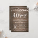40º Convite de Aniversário de Casamento. Fundo Rustic Wood. Luzes de Corda. 1rua, segundo, 3º, 4º, 5, 10º, 15, 20, 25, 35º, 45º, 45º, 50º, 55º, 60º, 65º, 70, 75º, 80, Qualquer Ano. Aniversário Adulto. Mulher ou Festa de aniversário masculina. Para mais personalização, clique no botão "Personalizar" e use nossa ferramenta de design para modificar este modelo.