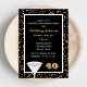 Este convite de festas personalizado de aniversário de 40 anos Surpresa apresenta um confete ouro sobre preto no fundo com um vidro para um brinde e o fazer número "40" para uma maneira moderna de excelente de convidar convidados para uma festa de aniversário surpresa 40. Direitos autorais
