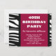 40 com convites personalizados de espiral zebra, cor-de-rosa e preto e branco, Excelente para aniversário de 40 anos ou qualquer ano! Personalize este convite para animais na moda com o seu nome, idade e informações de festa. Magenta cor-de-rosa escura com listras zebra pretas e brancas.