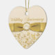 Este coração cerâmico deu forma ao marfim e enfeites de natal florais do aniversário de casamento do ouro os 40th têm uma fita e um arco IMPRESSOS ouro com um marfim e um medalhão IMPRESSO ouro nele. Fariam uma lembrança bonita para o casal que comemora 40 anos junto. O texto é customizável. Se você precisa a ajuda que personaliza o, envie por correio electrónico por favor niteowlstudio@gmail.com.