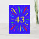 Uma carta de 43 anos explosiva! Que maneira maravilhosa de enviar cartões de aniversários. O número 43 em amarelo brilhante com uma explosão de cores brilhantes e estrelas.