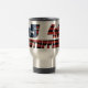 caneca de viagem prateada de 15 oz gravada com 45 48 com fundo de bandeira dos EUA. Viagem com a garantia de que seus amigos conservadores e estranhos saberão onde estão.